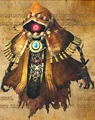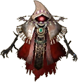Wizzro is a companion of the sorceress Cia, with whom he rages war onto the Kingdom of Hyrule. Wizzro was originally a cursed ring that, over many centuries, had lured its victims into wearing it, allowing it to absorb their essence and condensing their deceased souls into a single, malevolent spirit. He was reborn as a sorcerer by Cia's dark magic.[2][3]
