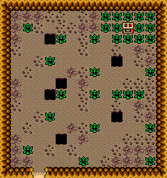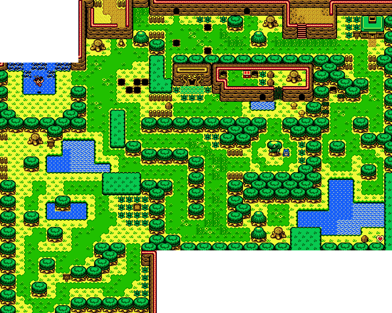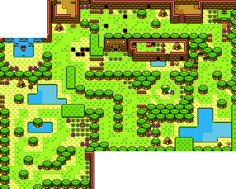 After acquiring the Power Bracelet from the Snake's Remains, Link can lift rocks blocking paths in the woods. One rock in the southeastern corner of the woods guards a Piece of Heart.[2]