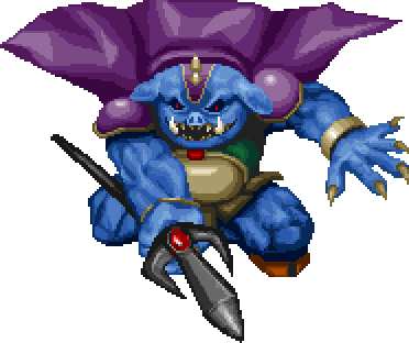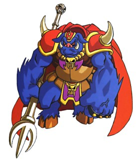 他是少王的心腹重臣。為了對薩爾達公主施咒,他耗盡所有力量並在施完咒語後死亡。他如此執著於三角神力的原因,據說是因為他的真身是加儂的自我分身,就像過去的黑闇巫師亞古尼姆一樣;或著也可能是他暗中被加儂操控著。"(《海拉魯史記》(小學館), pg.104) - ↑ "MANY YEARS AGO PRINCE DARKNESS "GANNON" STOLE ONE OF THE TRIFORCE WITH POWER. PRINCESS ZELDA HAD ONE OF THE TRIFORCE WITH WISDOM. SHE DIVIDED IT INTO "8" UNITS TO HIDE IT FROM "GANNON" BEFORE SHE WAS CAPTURED. GO FIND THE "8" UNITS "LINK" TO SAVE HER." — 《薩爾達傳說》引言