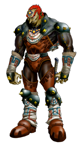 - ↑ "已經絲毫沒有過去曾被稱為大盜賊加儂多夫人類樣貌的他,變成了失去理智的魔獸與林克敵對著。"(《海拉魯史記》(小學館), pg.106)